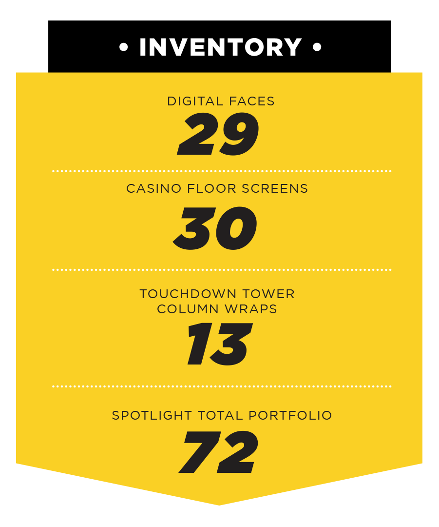 Spotlight’s 72 out of home advertising units at the epicenter of the Las Vegas Strip serves up massive reach and frequency, delivering over 46,935,995 impressions weekly.